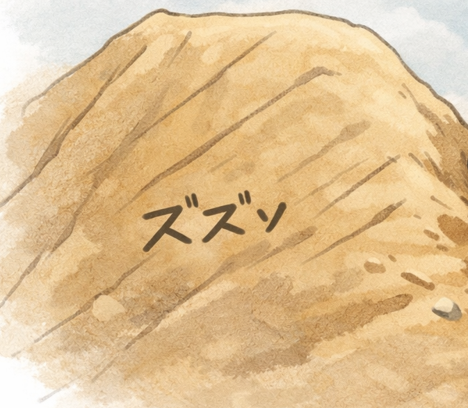 土砂の山に乗り上げてしまった。