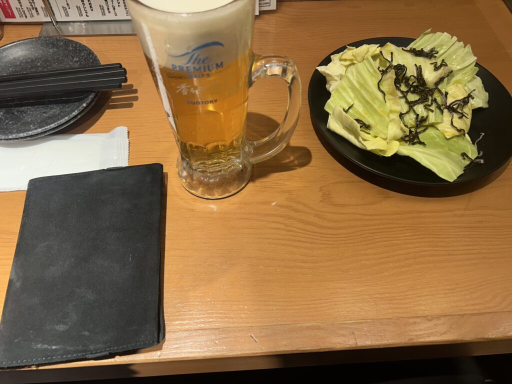 お通しのキャベツはおかわり無料なので、元を取るため食べまくる。