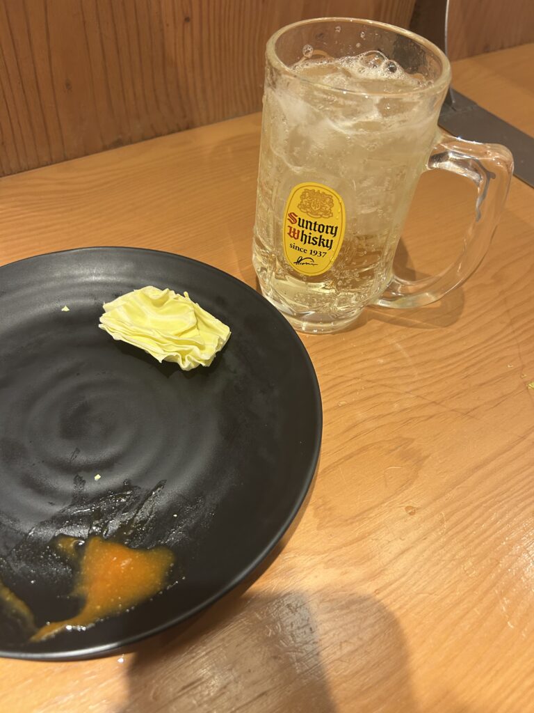 最後の〆に、クーポンで無料だった角ハイを飲み干す。